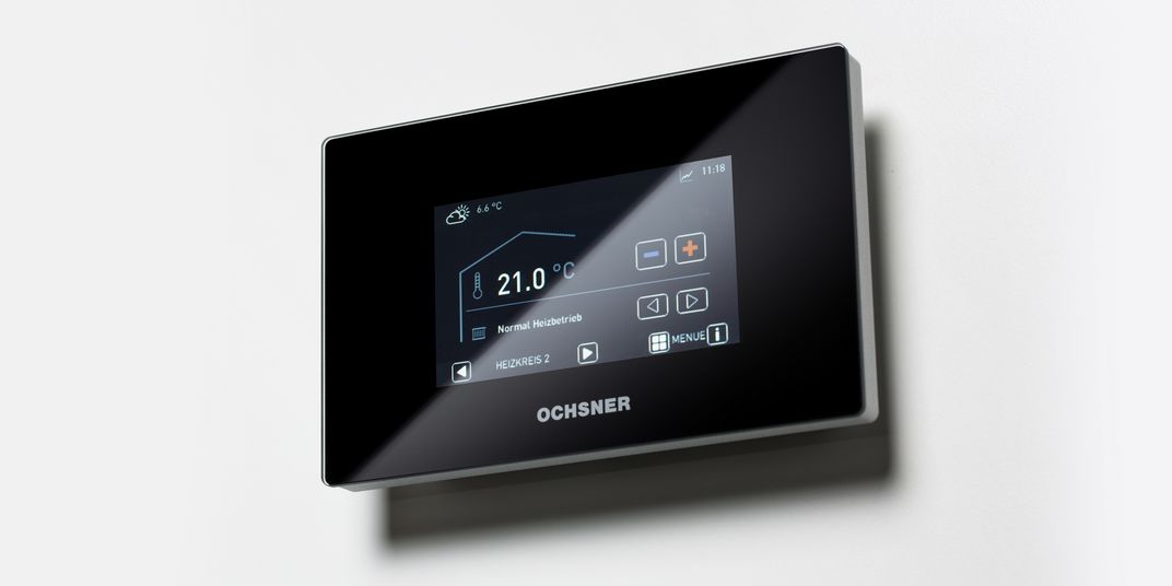 Die interaktive Bedienoberfläche besteht aus einer rahmenlosen, gehärteten Glasscheibe in schwarz. Nur durch eine bewusste Schattenfuge getrennt, schmiegt sich dahinter der schlanke Grundkörper aus Metall an. Die gesamte Steuerung wurde gezielt als leichter, vor der Mauerscheibe schwebender, zeitloser Bauköper konzipiert.