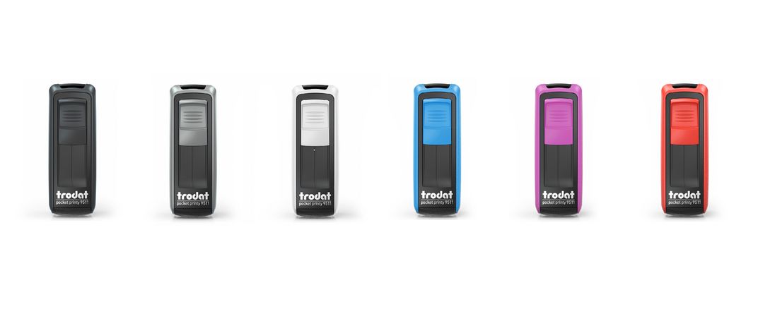 Trodats neues Pocket Printy Sortiment wurde speziell designt für die Anforderungen von Stempelbenutzern, die häufig unterwegs sind und einen Stempel benötigen, der funktionell, leicht zu transportieren und stets einsatzbereit ist.