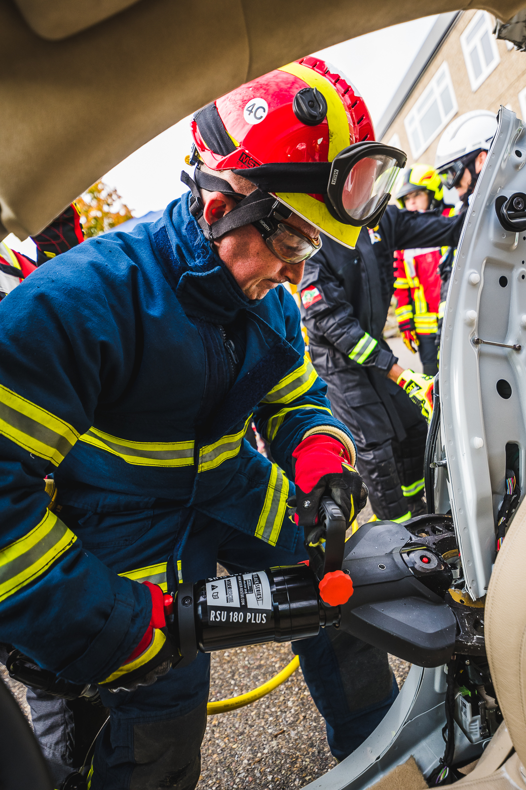 Der um 360° drehbare und abklappbare Haltegriff aus glasfaserverstärktem Kunststoff ist für minimalen Platzbedarf optimiert und bietet gleichzeitig festen Grip. Das Material isoliert den Geräteführer bis zu 1.000 Volt Spannung. Die gesamte Gestaltung konzentriert sich auf ein vereinfachtes Handling, ohne an Schneidkraft zu verlieren. Jedes Detail zählt, um Leben zu retten.