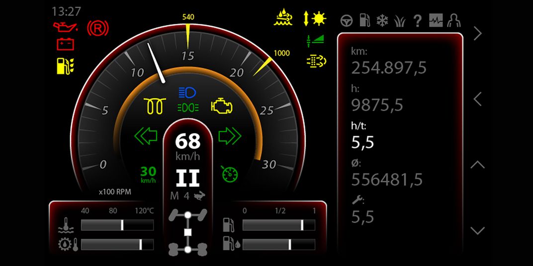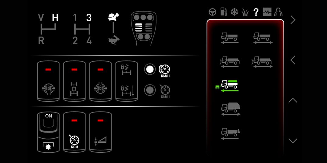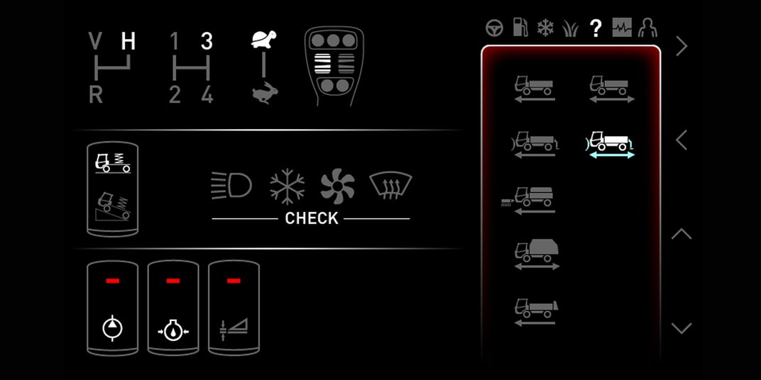 Bei dem Bedienerleitsystem wurden der Großteil der analogen Bedienelemte des Fahrzeuges in eine digitale Anzeige transferiert.